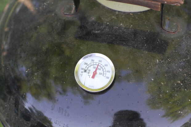 Cuando los carbones lucir tan ardiente como el fuego del Hades puso sus rejillas en y cubrir con la tapa. Que caliente hasta que esté tan caliente como se atreven lo dejas llegar. Éste llegó a 400F después de 3 minutos de estar cubierto. El más alto registrado el termómetro barato era 650F. Muy muy caliente. Si usted está buscando algunos super abrasador calor, entonces la parrilla directamente sobre la rejilla inferior. Esto le dará rápidamente bastante "negro y azul".
