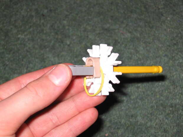 las 3 últimas fotos son la misma cosa - Deslice el blanco poco al lado de la pieza marrón para atrapar a la banda de goma a continuación, repetir este proceso en el otro extremo