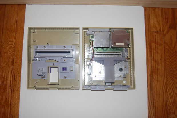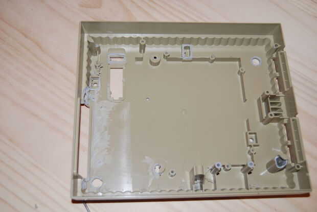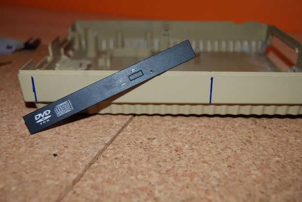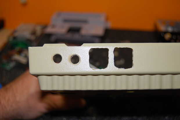 Abrir y desmontar el interior de la SNES. Una vez hasta la concha, me di cuenta de que iba a poner todo. Todo lo que se pega usando una Dremel quité. En rodajas abierto del lado derecho para la ROM de DVD con un cuchillo de la manía. Y asomó unos agujeros con un soldador de los interruptores, LEDs y cable de alimentación.