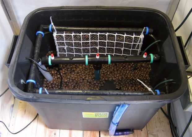 Estoy usando diversas variantes de cultivo hidropónicas en un sistema, es decir, aeroponía LP (baja presión), DWC (cultivo en agua profunda) bubbleponics y un sistema de circulación modificado derivado de rDWC (cultivo en agua profunda con recirculación). Yo también he aumentado la superficie de agua para ayudar a la transferencia de oxígeno.