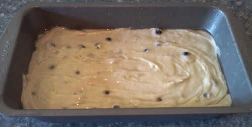 ** Esta receta también funciona como una receta de muffin de arándanos grandes. Sólo Vierta en un molde de muffins (panecillos opcionales) y hornear a 350 por unos 30 minutos o hasta que se doren.