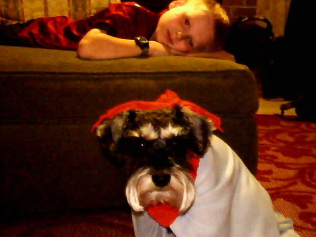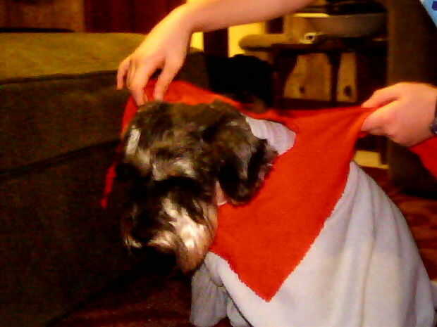 Ahora toma el pañuelo y atarlo alrededor del cuello de los perros como lo hizo con la manta.