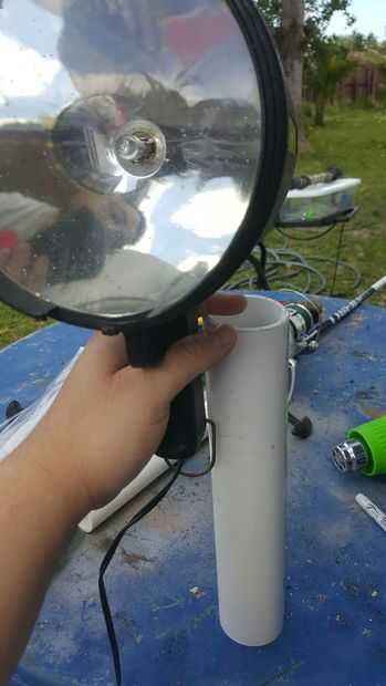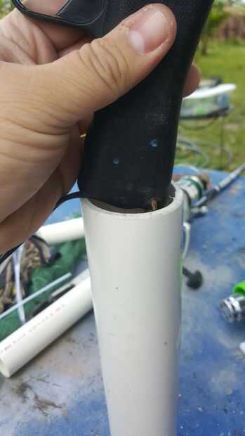 No tengo una tubería más gruesa por lo que ampliar el conjunto calentando hasta conseguir suave y utilice uno de los sujetadores de varillas para difundirlo o ampliarla para que el mango se adapta acurrucarse.