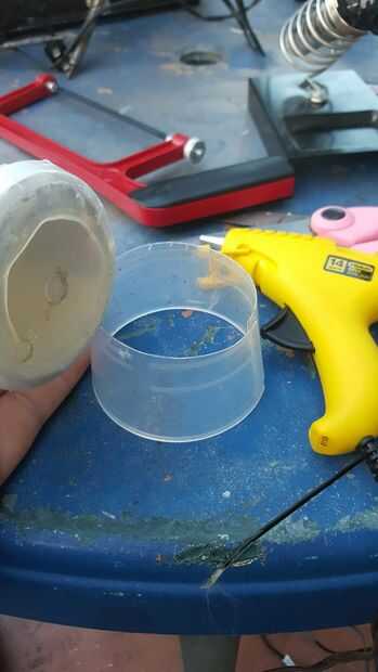Vez a unido a la tapa de plástico (de vestir jabón líquido) vamos a cortar la parte de abajo y pégalo al tubo y wallah lo ha hecho.