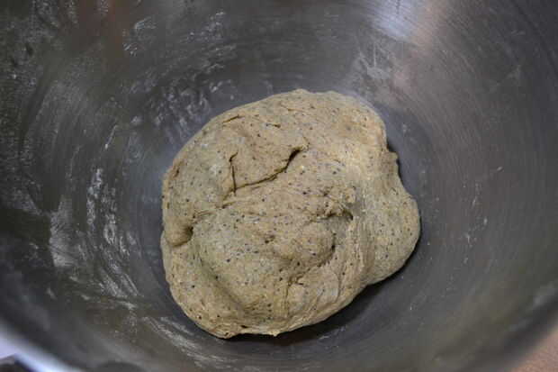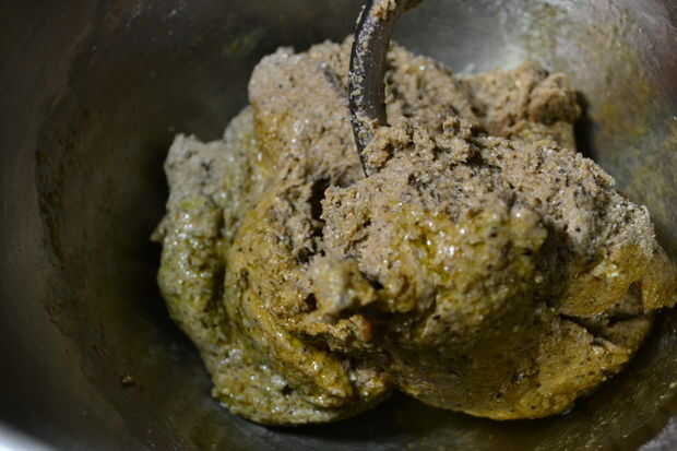 Añadir el aceite y siga batiendo hasta obtener una masa uniforme (4-5 minutos). Que tenga que agregar una cucharada de agua si la masa está demasiado dura o una cucharada de harina Si la masa está suave.