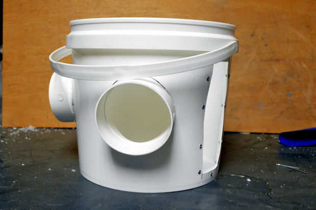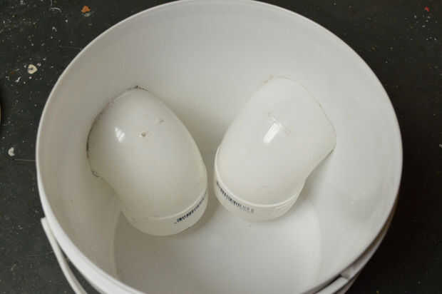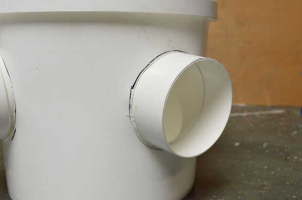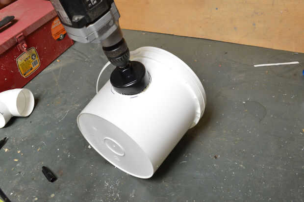 3. una vez que los agujeros son lo suficientemente grandes, empuje el codo de PVC a través de él y hasta que son hacia abajo