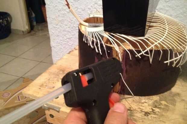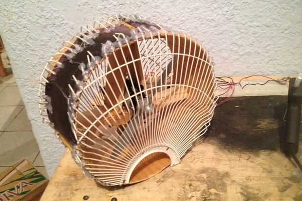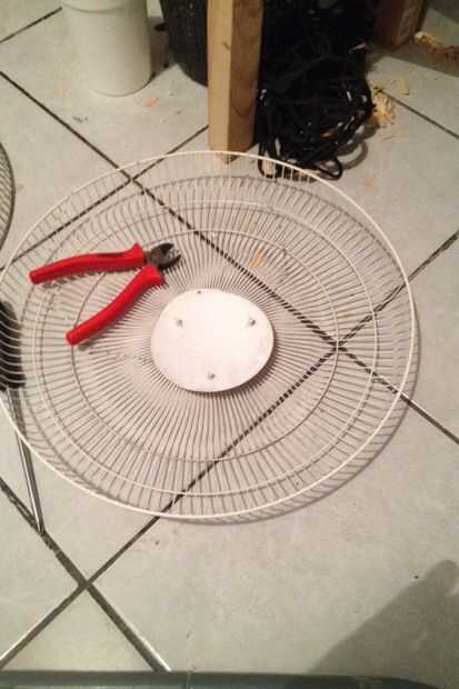 Usé algunos cortadores de alambre y cortar un círculo de rejilla protectora de un ventilador más grande que estaba cerca de la mitad una pulgada más grande entonces el conducto. Había doblado el cable alrededor del conducto. Entonces usé protección pegamento de cola caliente en la parte delantera y trasera.
