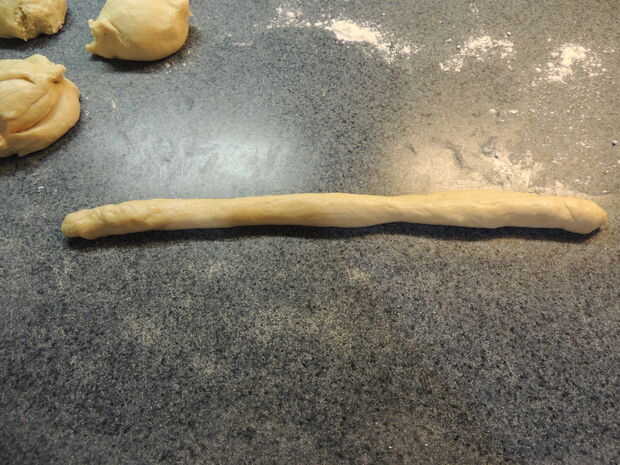 3. Tomar una pieza y amasar durante un minuto o dos y luego rodar hacia fuera en una cuerda.