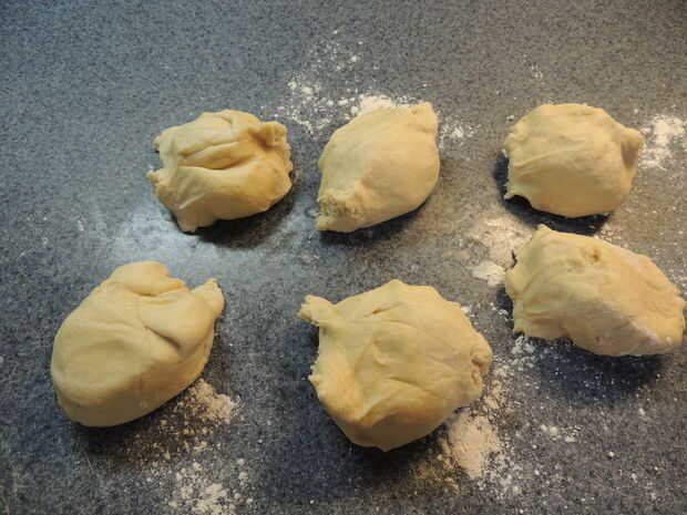 1. Aplaste la masa y ponerla sobre una superficie ligeramente enharinada.
