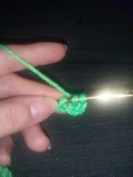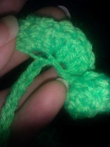 Ida - con base en la mano todavía SC 3 CH 20, 2 C.C. de 4 CH de gancho. 3 cc en cada uno de los restantes 16 CHs. pierna a rizar por cuenta propia. Entonces mueva hacia atrás a la base.