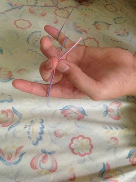 Fijar el hilo de ganchillo y lo puso en los dedos como en la foto.
