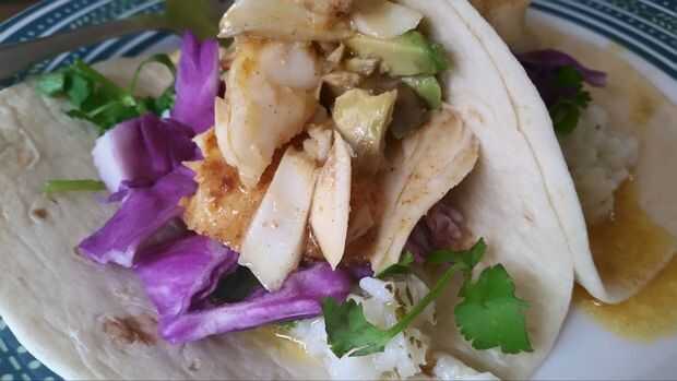 Tire el paquete de pescado del horno y establecidas (ser muy cuidadoso al abrir el paquete), junto con las cuñas de la col y otros ingredientes del taco y disfrutar de esa exquisitez!