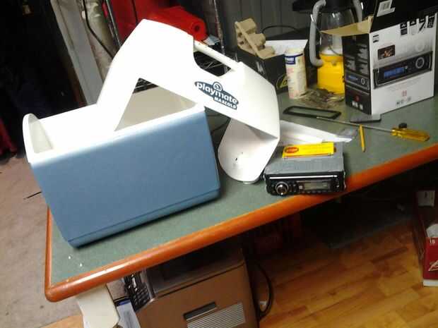 tapa refrigerador entonces se quita fácilmente - agarrar una caja de cerveza vacía para usar como soporte temporal