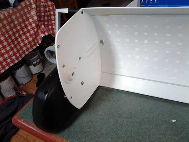 siguiente paso es montar cualquier par calidad de altavoces a lado usando contador hundido hardware Si es posible para no causar interferencia cuando la apertura y cierre - (dependiendo de altavoces elegidos, con tornillos para madera orificios haría) ver foto de ubicación y ahora adelante el frente para dejar suficiente espacio para las baterías mejor