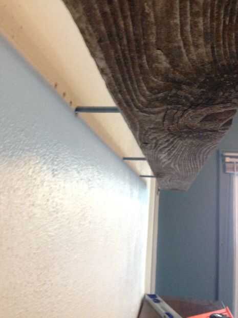 En segundo lugar, agarré un pedazo de madera para sostener contra el frente del anaquel estante luego de martillo proteger.