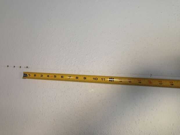 He sostenido un nivel y dibuja una línea. Ahora estoy listo para encontrar los postes de madera.