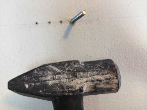 Al parecer mi guía de taladro empujado contra una pared de yeso negro estaba a menos de la solución adecuada... No se preocupe, aunque. Tengo una herramienta que siempre es una solución adecuada. Martillo de tiempo.
