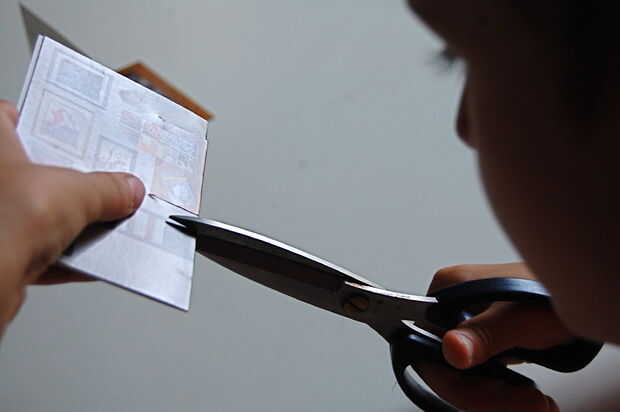 Use sus tijeras para cortar los lados del asiento de la silla (no la espalda) y la tapa de tabla. Un total de cuatro recortes rápidos.