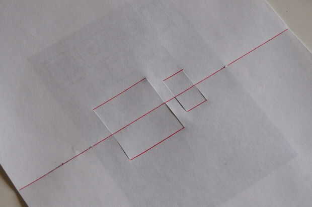 Desplegar su hoja de papel y utilizar su bolígrafo y regla para dibujar un total de cuatro líneas, paralelas al doblez de centro, conectando la parte superior e inferior de los cortes que acaba de hacer.