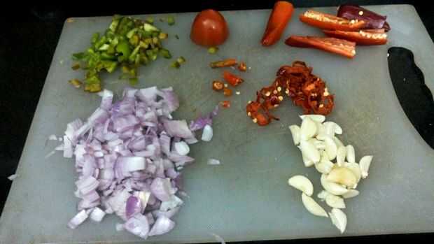 1. picar la cebolla, el ajo y la pimienta.