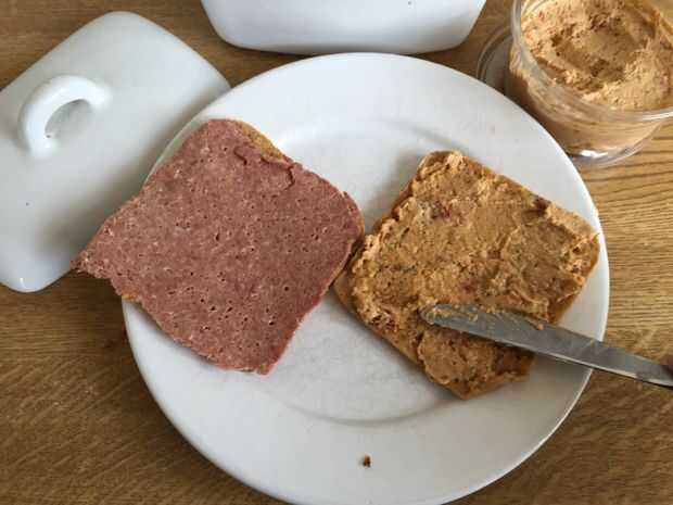 Luego coloque un bonito trozo de Cecina en el otro segmento y ponerlos juntos.