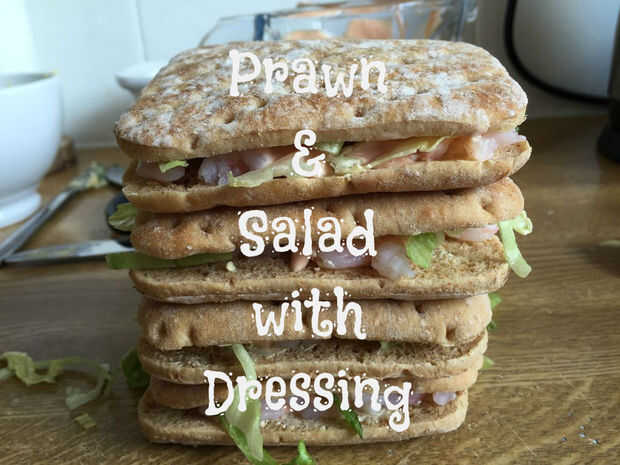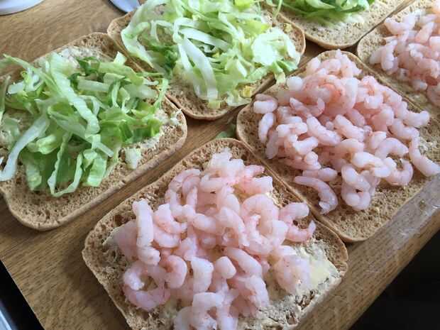 Gambas frescas, fresco rallado lechuga y una extensión de luz de su aderezo favorito (isla de e.g.Thousand, hace un magnífico sandwich.