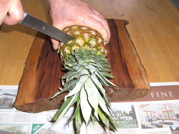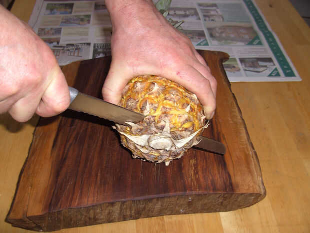 Whip de ambos extremos de su fruta y Consejo en el diario de la espera. El extremo inferior puede ser un poco duro así que asegúrese de que quita bastante.