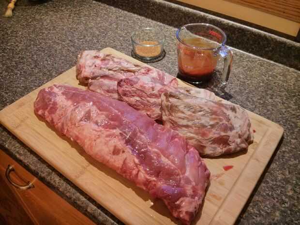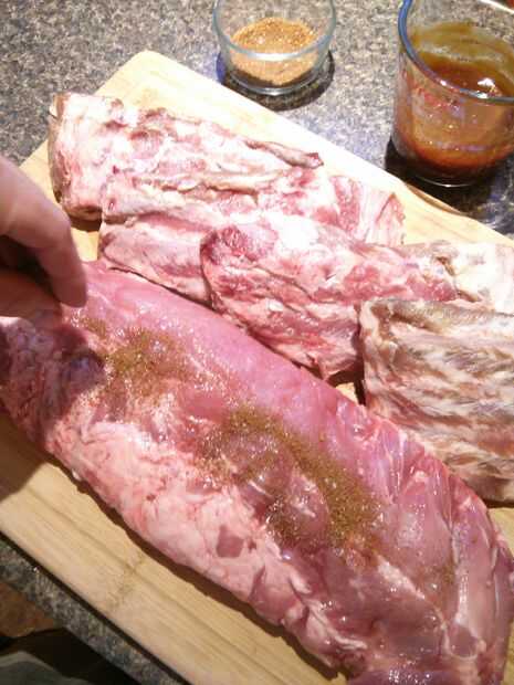 • Frote la mezcla de especias sobre las costillas. Coloque las costillas en asar pan y tienda la bandeja con papel de aluminio o si usa asadera, cubrir. Cocinar durante aproximadamente 3 1/2 horas, prueba las costillas de ternura. Si es necesario, continuar la cocción hasta que la carne es ternura deseada. Ahora están listas para el acabado de la parrilla las costillas!