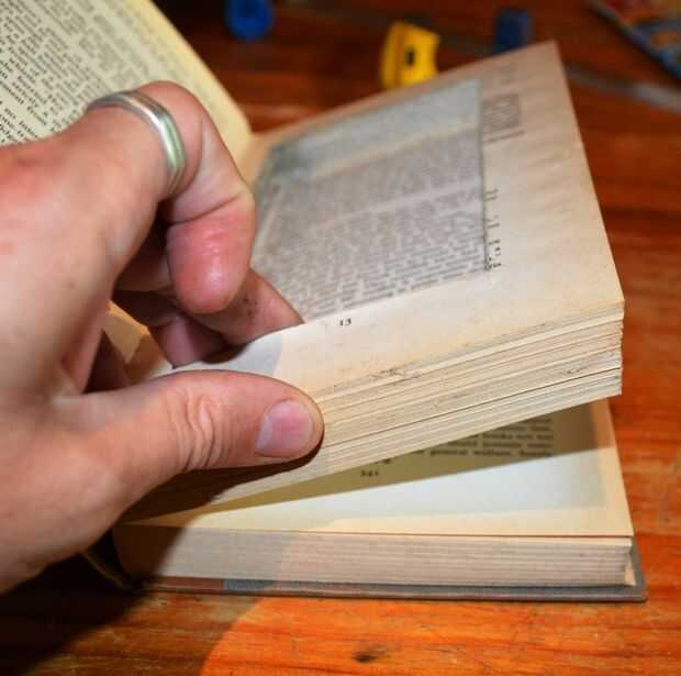 2. una vez que todo se pega, agregar algunos pesos pesados del libro para que el pegamento se extiende uniformemente.