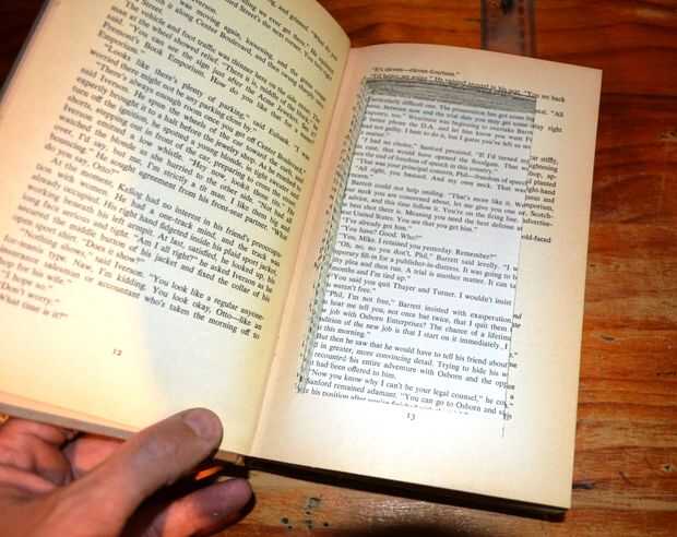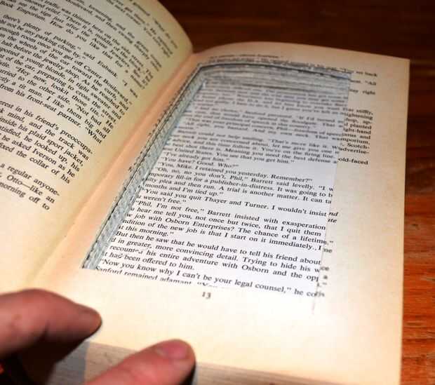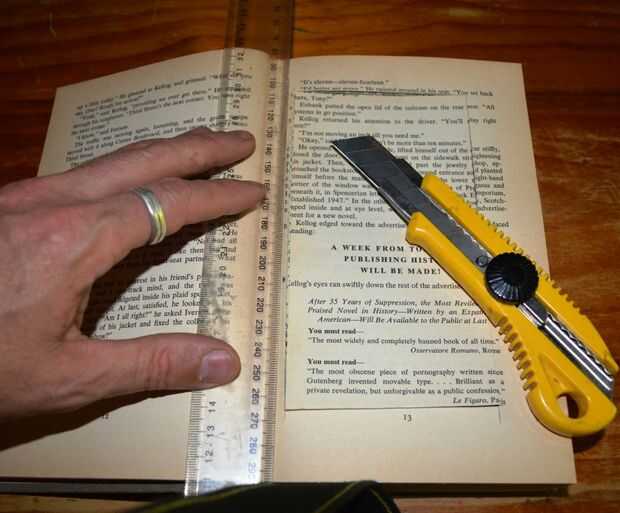 1. agarrar el cuchillo stanley y regla y abrir su libro. Asegúrese de que dejar unos 10 a 15 páginas antes de empezar a cortar las secciones huecas.
