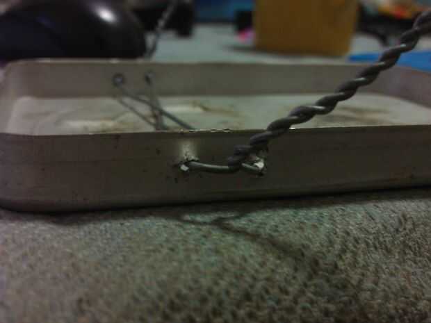 -Sacar la tapa y taladro 4 pequeños agujeros para encajar el alambre de hierro y tiene que ser 2 agujeros a cada lado de la cubierta.