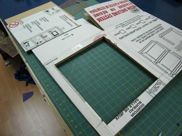 3) cortar los cuatro paneles de la caja usando un cuchillo x-acto y corte en las líneas.