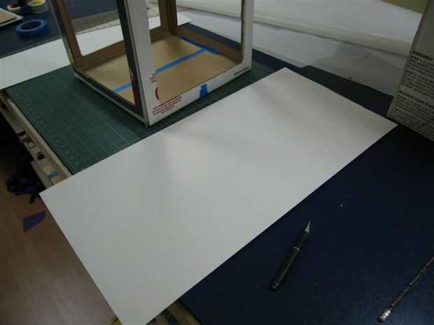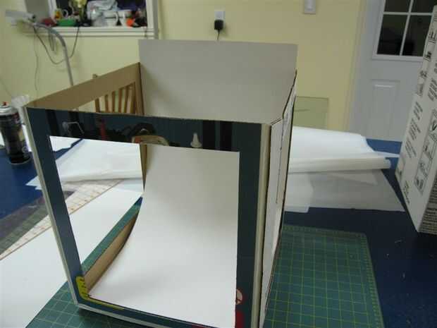 3) Introduzca la cartulina a la caja de modo que el borde de la cartulina se coloca contra la parte delantera de la caja y cartón se permite curva como una ola, half pipe, usted consigue el cuadro (espero :))