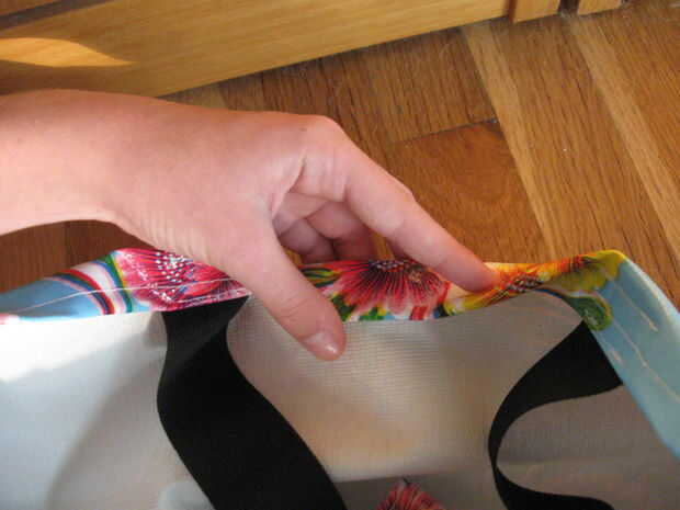 Tomar uno de los dos bordes corto (el 22" los) y doble el lado blanco hacia abajo alrededor de una pulgada dos veces. Clip junto con los clips de carpeta y coser recto. Si es complemento de un bolsillo Inserte debajo de uno de los bordes superiores antes de coser. Lo mismo al otro lado. Ver la imagen si confunde.