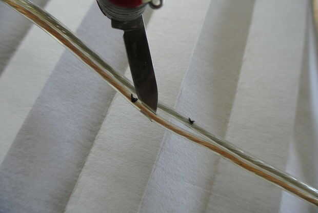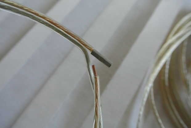 2. separar los dos hilos en el cable del altavoz usando un cuchillo. Desea separar los cables en una longitud de aproximadamente 1,5 pulgadas. Tenga cuidado de cortar entre los cables de modo que la manga de plástico alrededor de cada cable se mantiene intacta.