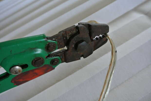 4. utilizar el pelacable para tomar alrededor de 6mm de la funda de plástico de cada extremo del cable.