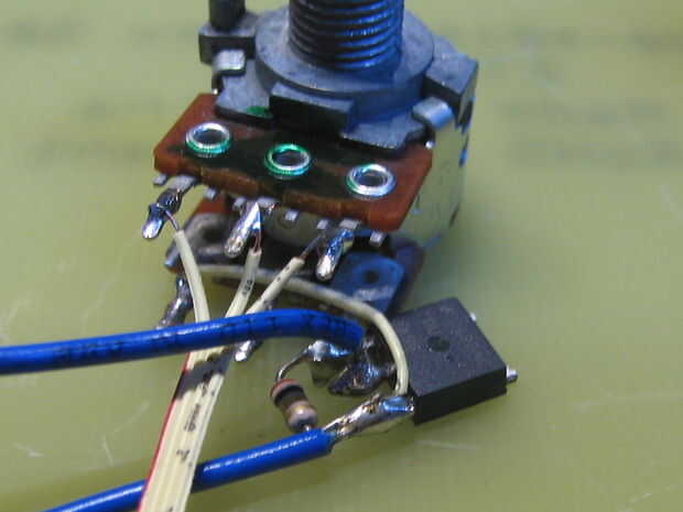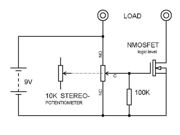 El circuito depende de la aplicación. La resistencia de telecine debe ser alrededor de diez veces mayor que la resistencia del potenciómetro. Para dispositivos de corriente baja se puede sustituir el mosfet con un transistor bipolar (necesita un resistor de base entonces.) También puede utilizar el interruptor con una entrada del microcontrolador, pero puede haber ruido ya que este no es un interruptor de altísima calidad. El hack funciona con potenciómetros lineales y logarítmicos. Potenciómetro de registro sería ideal para un circuito dimmer de luz PWM, tal vez con un 555 IC.