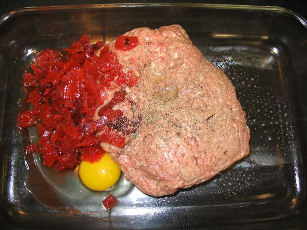 Mush los ingredientes juntos, asegurándose de mezclar de manera uniforme y formar un pan largo aplanado. ¿Ver? Esto tomó 3 minutos, y no hay ningún recipiente extra para lavar. Soy un gran fan de pereza.