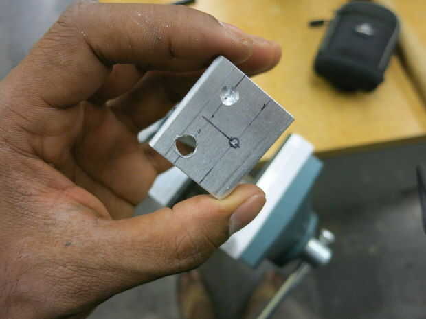 Que resultó para ser una idea tonta, y el "agujero" que tenía un patrón de oscilación extraña "tipo delta". Mal. Entonces fui a la prensa del taladro, y fue mucho mejor.