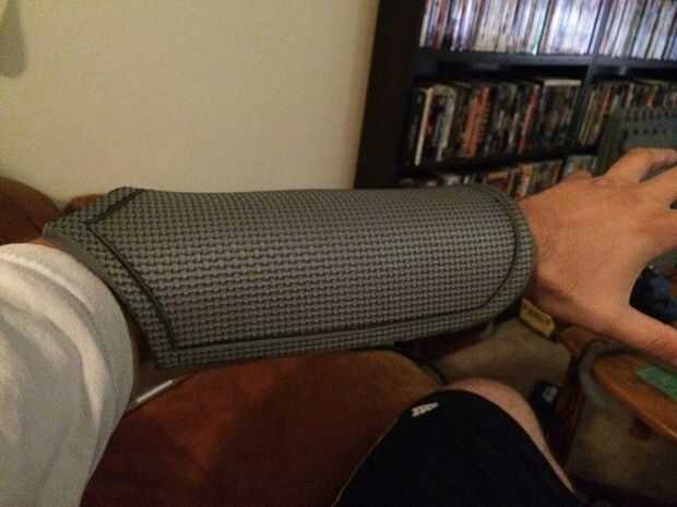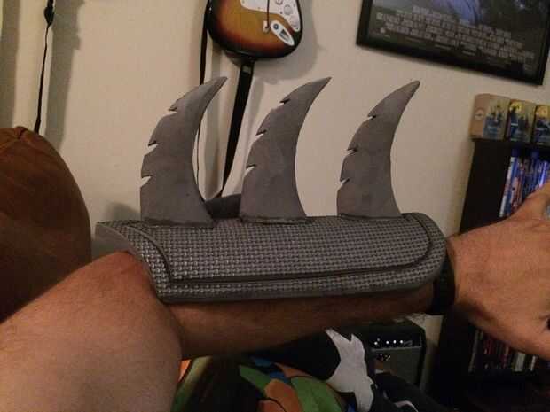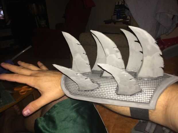 -Corte la forma del guantelete y use la pistola de calor en él para formar al antebrazo.