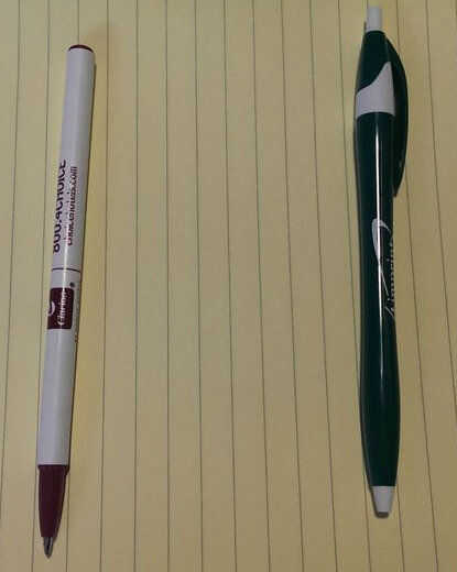 me gusta bolígrafos bic, son delgadas y bueno para mis dedos delgados. Además, son baratos, por lo que son las plumas sólo cuando puede permitirse el lujo de comprar en la escuela. Pero no son muy personales. Con frecuencia perderlos todos alrededor