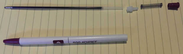 Esta pistola de goma pluma es muy sencilla y tarda aproximadamente 2 minutos para hacer!Vamos a empezar!Los materiales que necesitarás son:1 bolígrafo barato2 bandas de cauchoPaso 1: Desarmar la plumaRetire la tapa, cartucho, la tapa y la pieza de pl