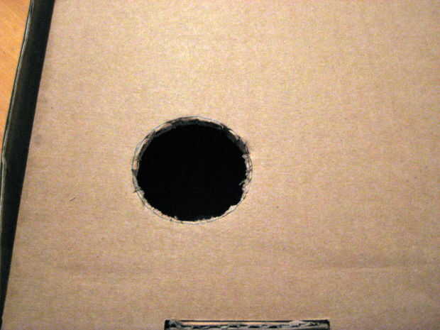 Abra la caja y quitar los círculos de cartón cortado si cayeron dentro. Apartarlas y cerrar el cuadro.