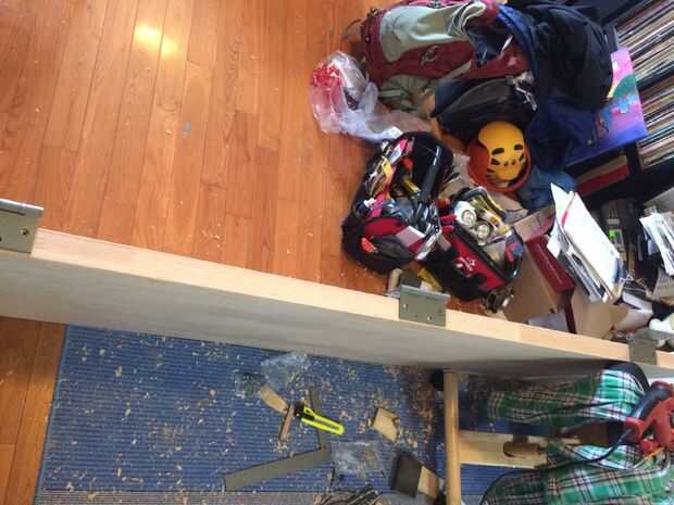 Desde esta puerta se va a tener que sostener una estantería llena de libros, compré una puerta de madera sólida y 3 bisagras de rodamiento de bolitas resistente (bisagras rodamientos de bolas son un suave abrir y cerrar y, a mi entender, son buenos para sostener peso).