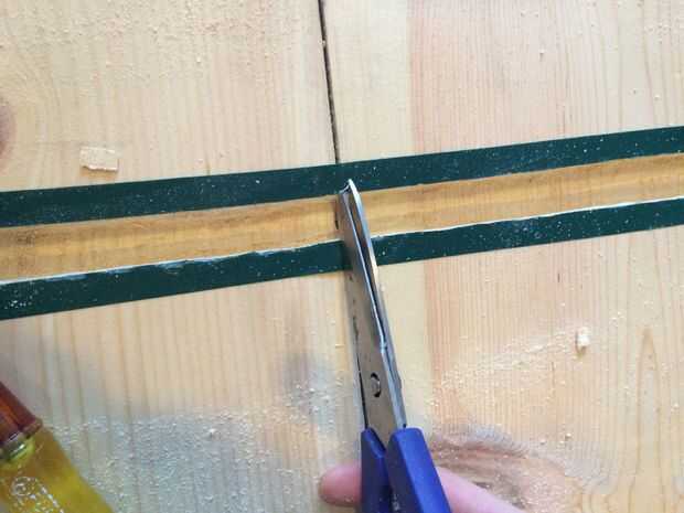 Puse cinta (comenzó con algunas lámparas que tenía y se trasladó a eléctrico cuando se agotaron--lámparas = bueno, eléctrico = no bueno) arriba y abajo en las ranuras del dado sería, la cinta fue una guía y reducir cualquier astillamiento.