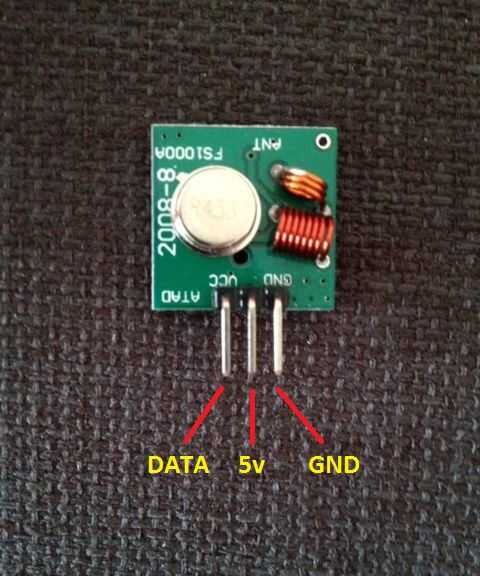 Una vez que han recogido sus códigos y datos de sincronización, puede desconectar la unidad del receptor como ya no se necesita. Usted puede entonces atar con alambre el transmisor directamente a los correspondientes pines GPIO de Pi como se muestra en la imagen de arriba. He encontrado que se etiquetan los pines en las unidades de transmisor, que facilita el proceso.