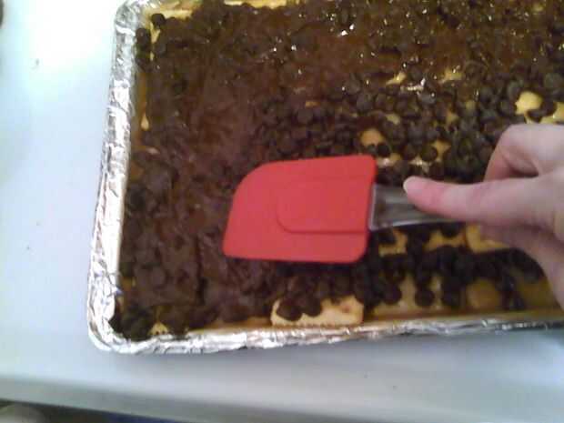 Pop la bandeja en la nevera y dejar enfriar durante un rato.