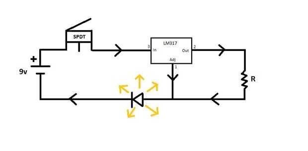 Cuando se abre la puerta del armario, se suelta el interruptor SPDT, consecuentemente el circuito es cerrado. Ya que ahora el circuito es cerrados, actuales flujos a la luz del LED se enciende.