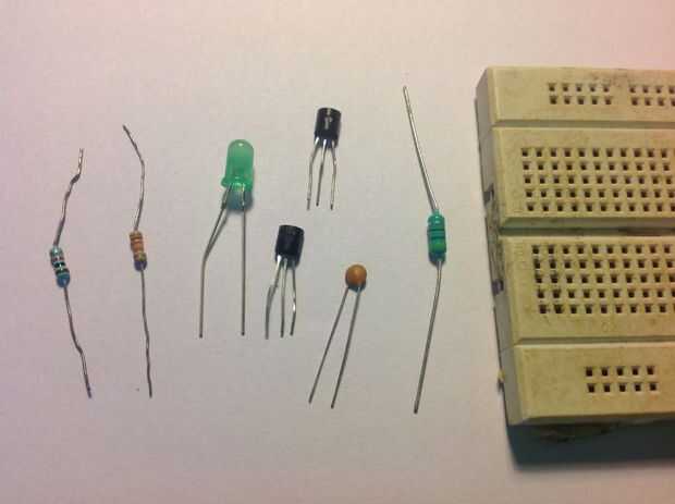 • 1 - los transistores NPN (BC547) y 1 PNP (BC557)