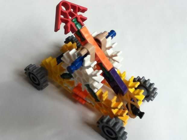 Para terminar, agregar las ruedas, un clip y y una banda elástica desde el gris / morado para el clip y.